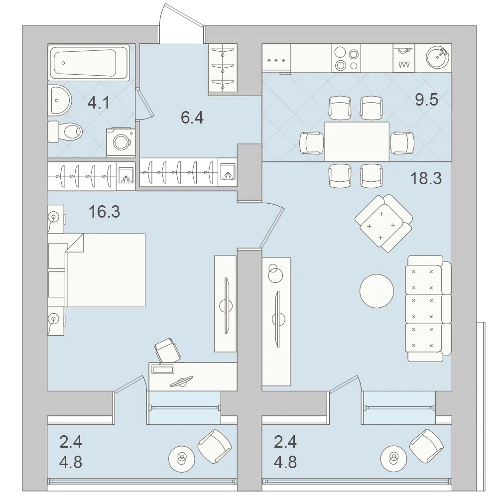 3-комнатная 69.2 м2