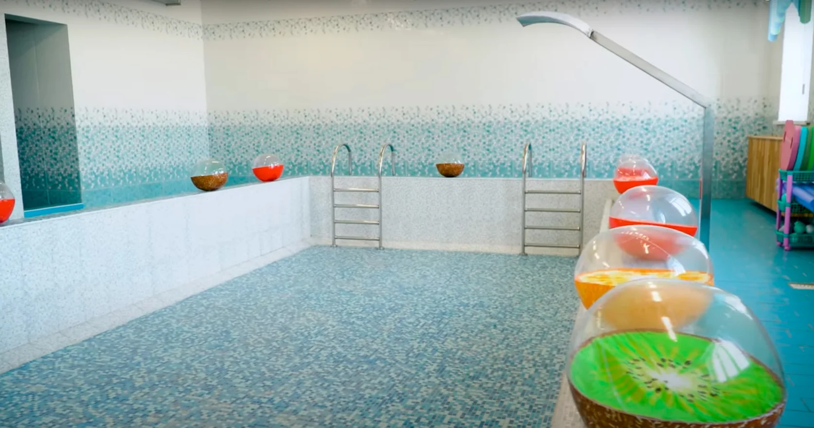 Кроме того, в детском саду есть большой музыкальный зал для проведения праздников и других активностей, физкультурный зал с тренажёрами и различным инвентарём, предназначенный специально для детей от 3 лет бассейн и продвинутый пищеблок. Особое внимание уделено и декору — помимо приятной цветовой гаммы в оформлении использовали ручную роспись стен.